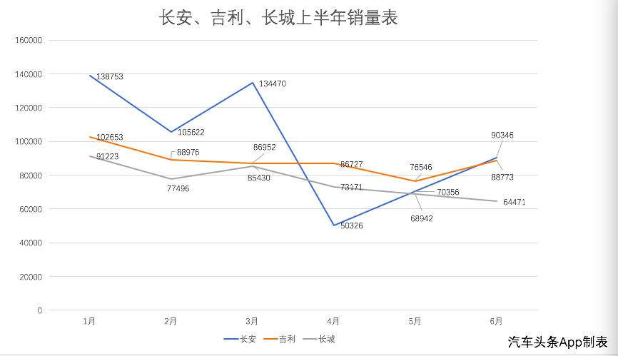 自主一线“军团”先后公布了6月份的销量,至7月9日,长城、吉利、长安上半年“相爱相杀“的局面暂时告一段落。
