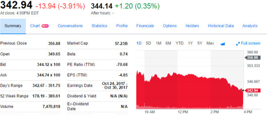 《华尔街日报》上周末援引消息人士的话称, Model 3自今年9月初开始发售以来,特斯拉的全自动生产线仍未能就位,迫使特斯拉制造工人不得不采用手工生产的“原始”方式,从而致使Model 3产能严重受限。一些接受采访的特斯拉员工称,公司在量产Model 3上遭遇的瓶颈之一就是员工需要手动安装和焊接车身板件,效率比机器人低得多。受此影响,特斯拉股价周一在纳斯达克证券市场低开低走,最终报收于342.94美元,较上一交易日下跌13.94美元,跌幅为3.91%。按照周一的收盘价计算,特斯拉市值约为572亿美元,较上周五的收盘价减少约23亿美元。