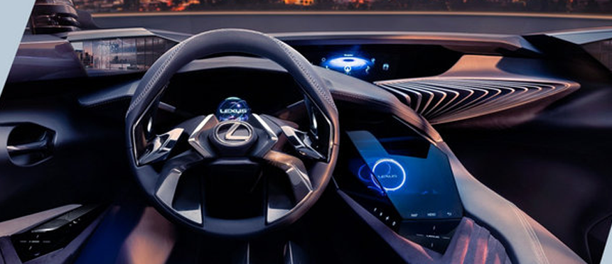 UX的中控台布局带有强烈的科技氛围,以驾驶者为核心的布局具有极高的视野。全“玻璃花”座舱预示着雷克萨斯UX未来的设计方向和理念。车内没有任何按钮,中控台采用晶体结构,提供全息3D体验,驾驶者可以通过触控交互来控制空调、多媒体系统等。