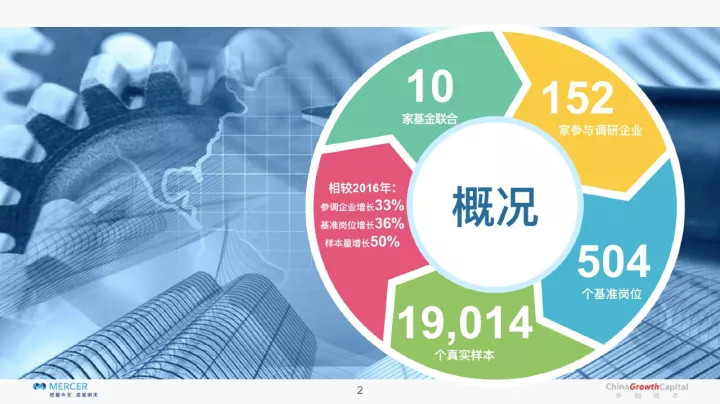 本次调研工作自 2017 年 6 月启动以来,历时近半年,由包括峰瑞资本(FreeS Fund)在内的 10 家 VC 累计近千家被投企业积极参与,经出品方严格核查,最终确定了符合此次调研数据质量标准的 152 家 C 轮前的早期企业,共涉及 504 个基准岗位、19,014 个真实样本,覆盖企业服务、消费升级、人工智能/大数据、金融科技、文化娱乐、医疗健康几大核心热门领域。相较 2016 年,本次参加调研的企业数量增长 33%、基准岗位数量增长 36%、样本量增长 50%。