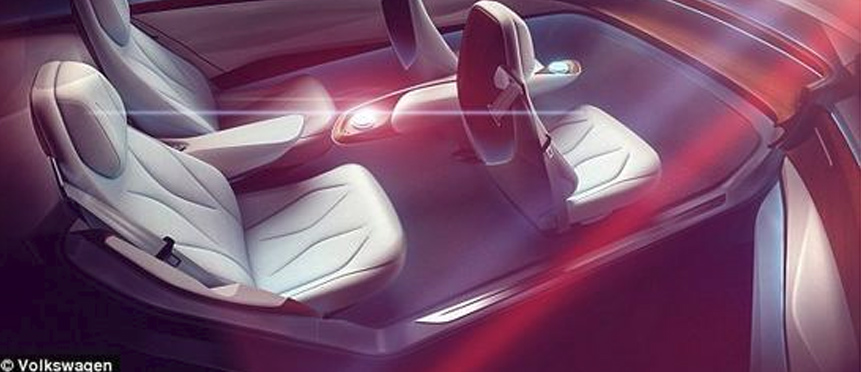 图示:大众汽车在日内瓦车展上发布的全电动自动驾驶概念车I.D Vizzion,没有方向盘,踏板甚至仪表盘