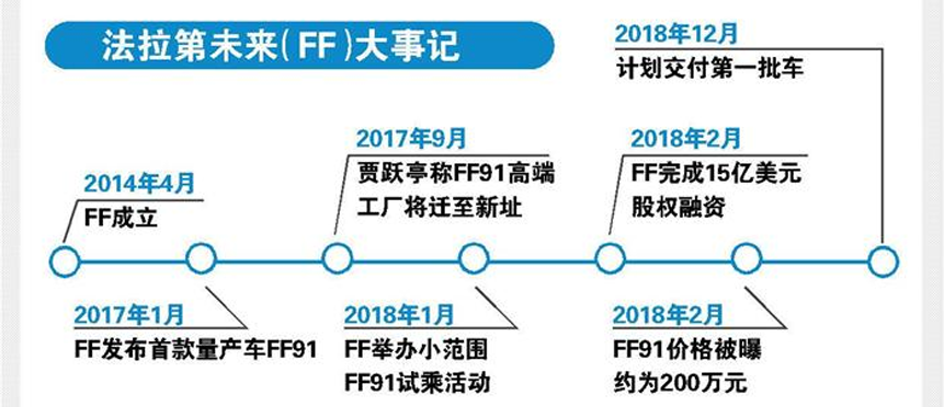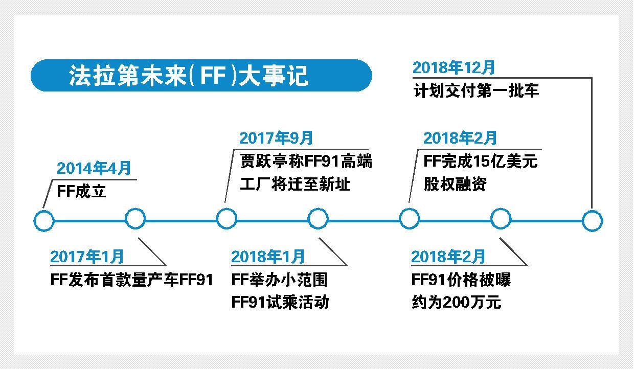 在今年CES上,就有FF高管透露,预测FF91在美售价为25万美元左右,而用户目前可缴纳5万元订金提前预订首批量产FF91。春节前,FF在美国举行了超200人规模的供应商大会。一位FF的合作伙伴表示,FF91定位为豪华电动车,在美国的售价为25万美元左右。