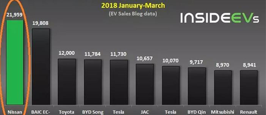 这是一个很讽刺的事情,因为2018年Q1的销量,LEAF在全球的竞争力还是不错的。更不用说LEAF其实在全球的电动汽车的累计销量是最多的。