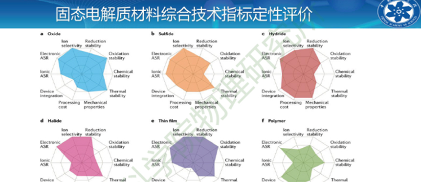 然而,各业界翘楚在固态电池的投入已有约20年历史,却依旧处于混沌未明的状态,电池厂各踞山头信仰不同的电解质体系,未出现技术流动或融合的态势,其中有的成功量产,有的不断推迟研发路谱,豪掷了亿万美元后黯然离场的更是时有所闻,天堂地狱般的落差导因于各电解质体系间本质路线的差异,在稳定性、电性表现与量产上有着以现代科技水平不可逆的先天性优缺点,我们依制程及化学系统将电解质分为六大类:氧化物、硫化物、氰化物、卤化物、薄膜、聚合物,列举四大技术路线说明其发展现况: