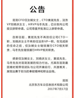 易到再次换血 四名乐视系高管离职